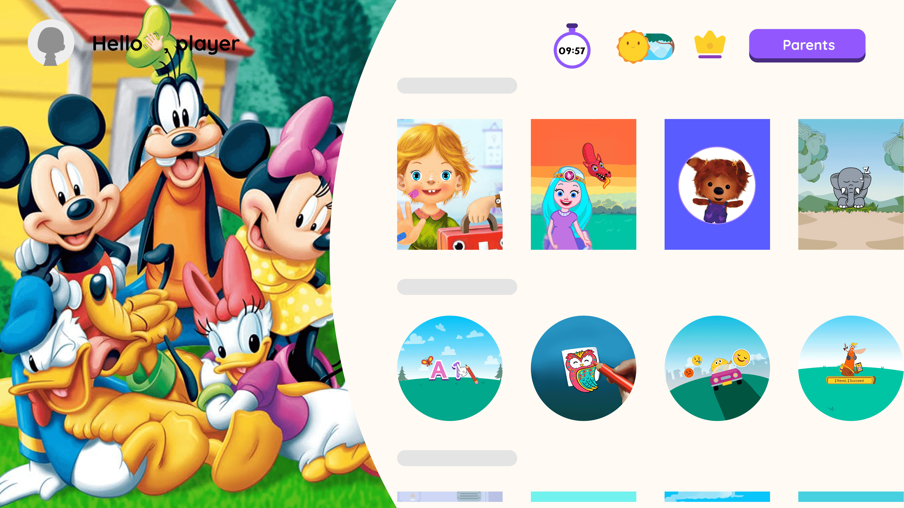 We reduced emphasis on a single main game and introduced a more natural, flexible layout that works comfortably in both vertical and horizontal use for children.