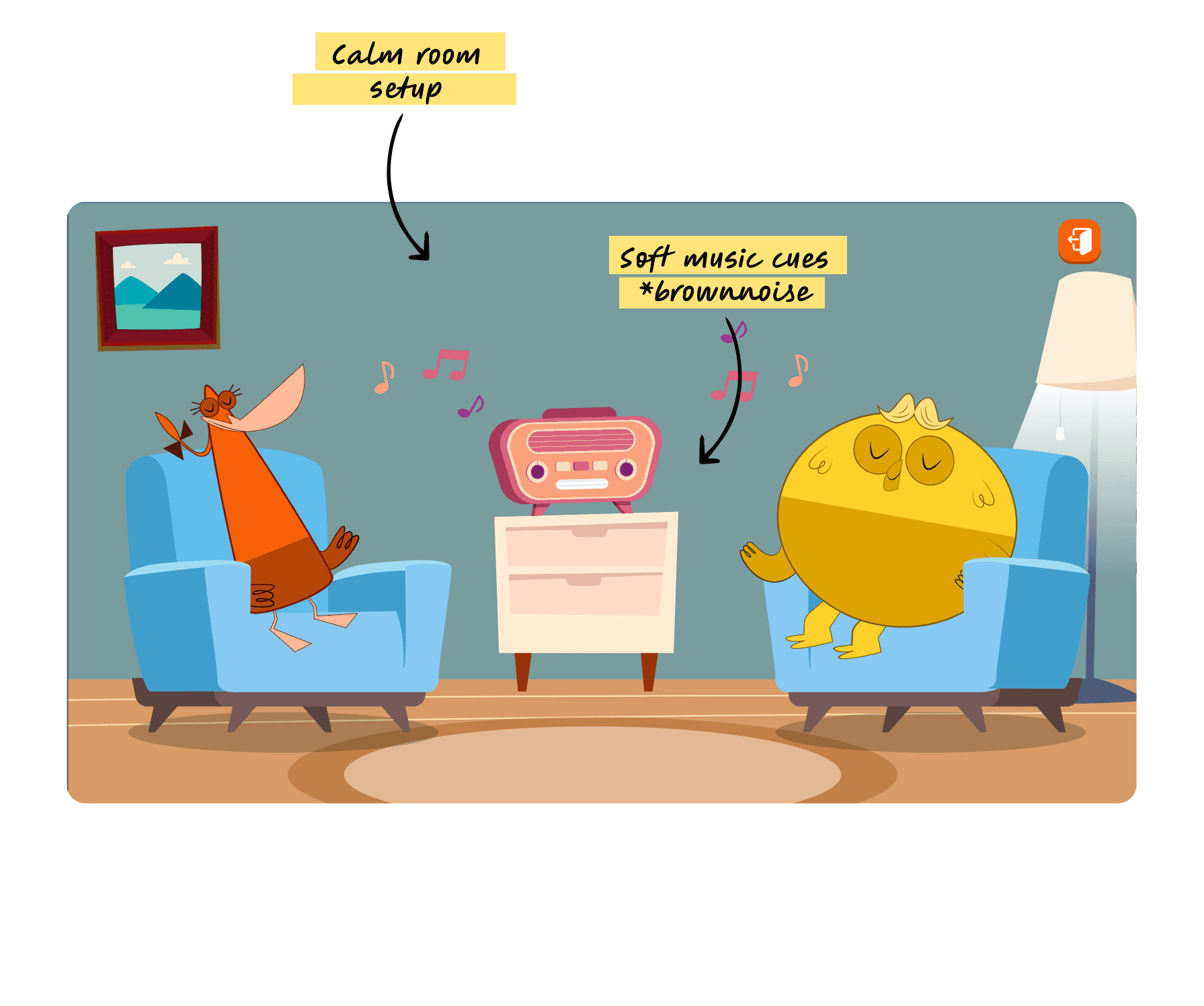 A dedicated calming space allows children to reset, either by choice or through gentle prompts.