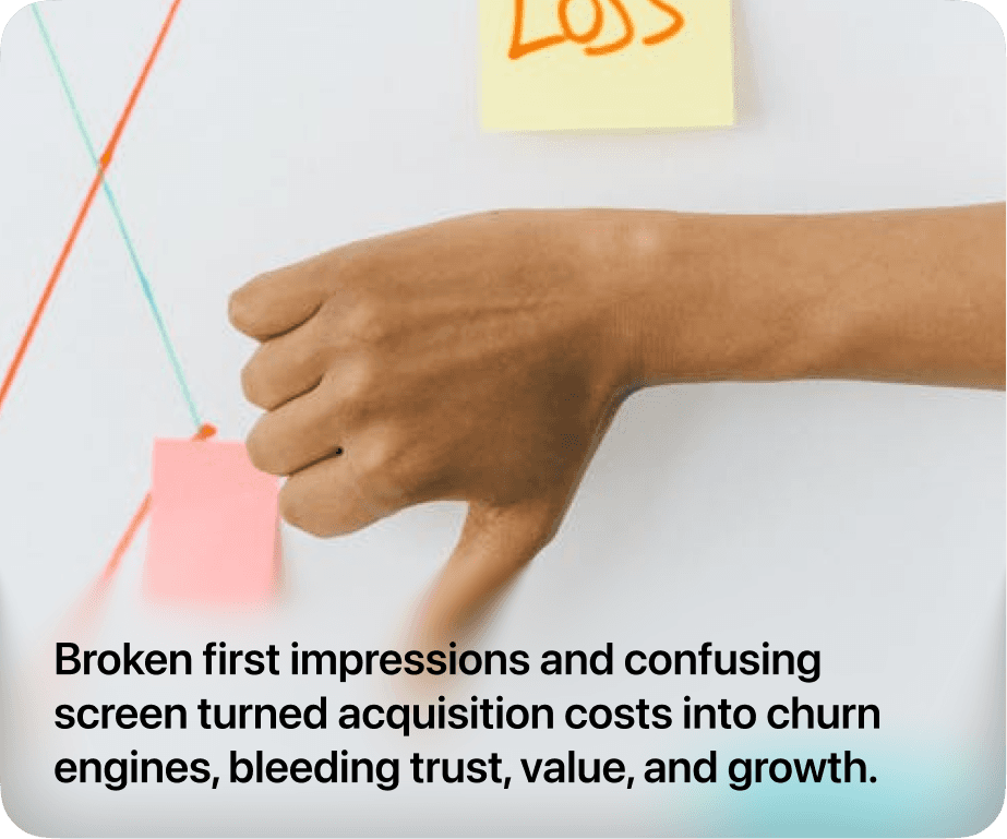 Cognitive load is high, causing confusion and early drop‑off.