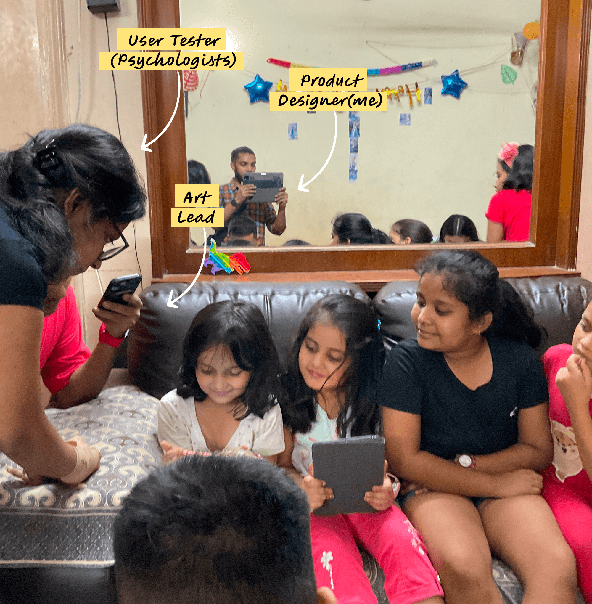 The goal of these sessions was to capture kids’ behaviour, emotions, and expressions in real time, then use those observations and post‑session feedback to refine the home screen design and improve related features.
