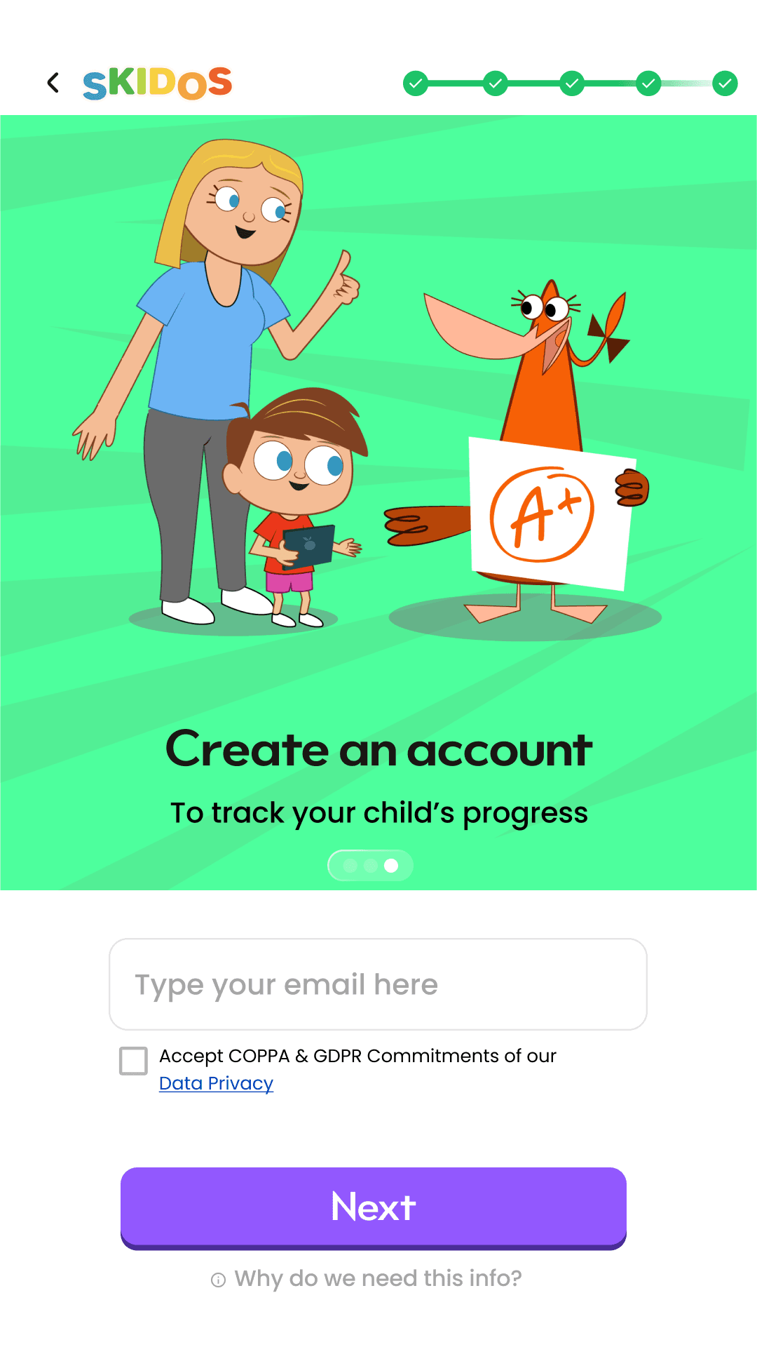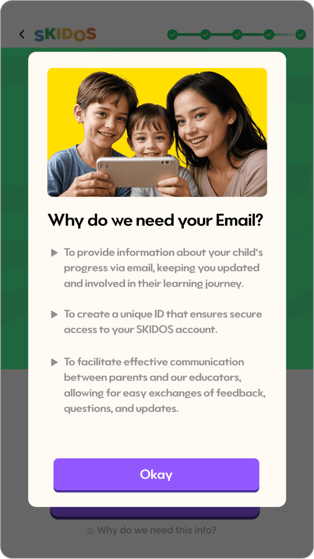Design an onboarding that is simple, helpful, and builds parents’ trust — aligned with SKIDOS’ mission inclusive design.