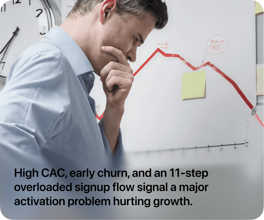 High onboarding drop-off and low completion rates were reducing early trust and increasing CAC.